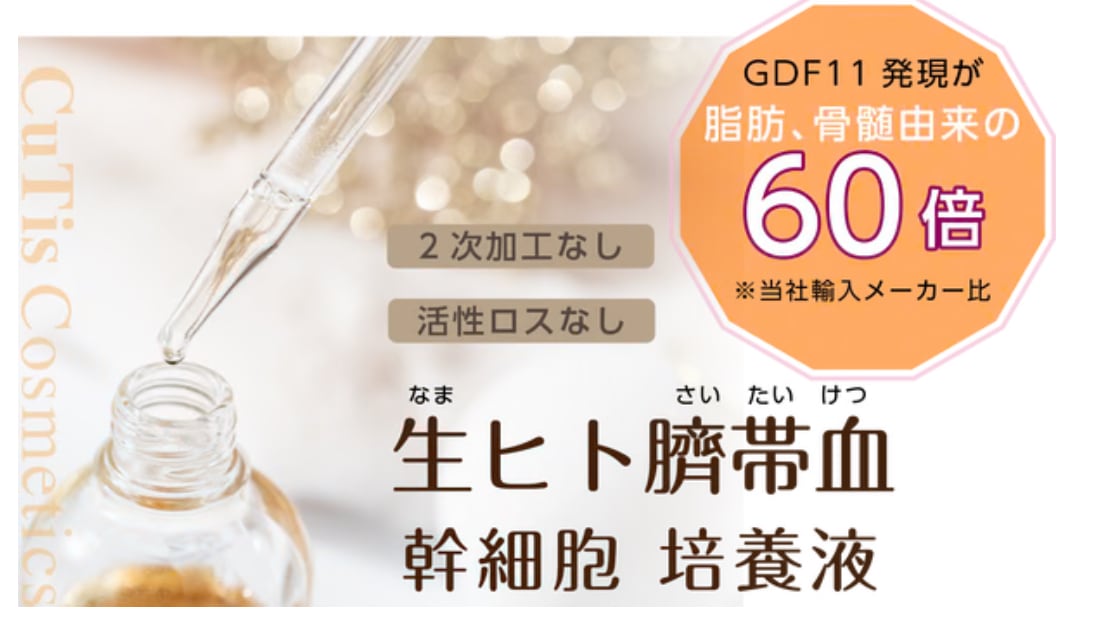 ヒト臍帯血幹細胞培養液から抽出し、2次加工していない生の液体原料なので活性ロスがなく高純度の美容液。